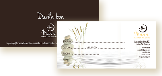 Razvajajte sebe in svoje najbližje z darilnimi boni. Naročite darilni bon preko: 041/731-060 03/577-33-30 mazzi68@gmail.com